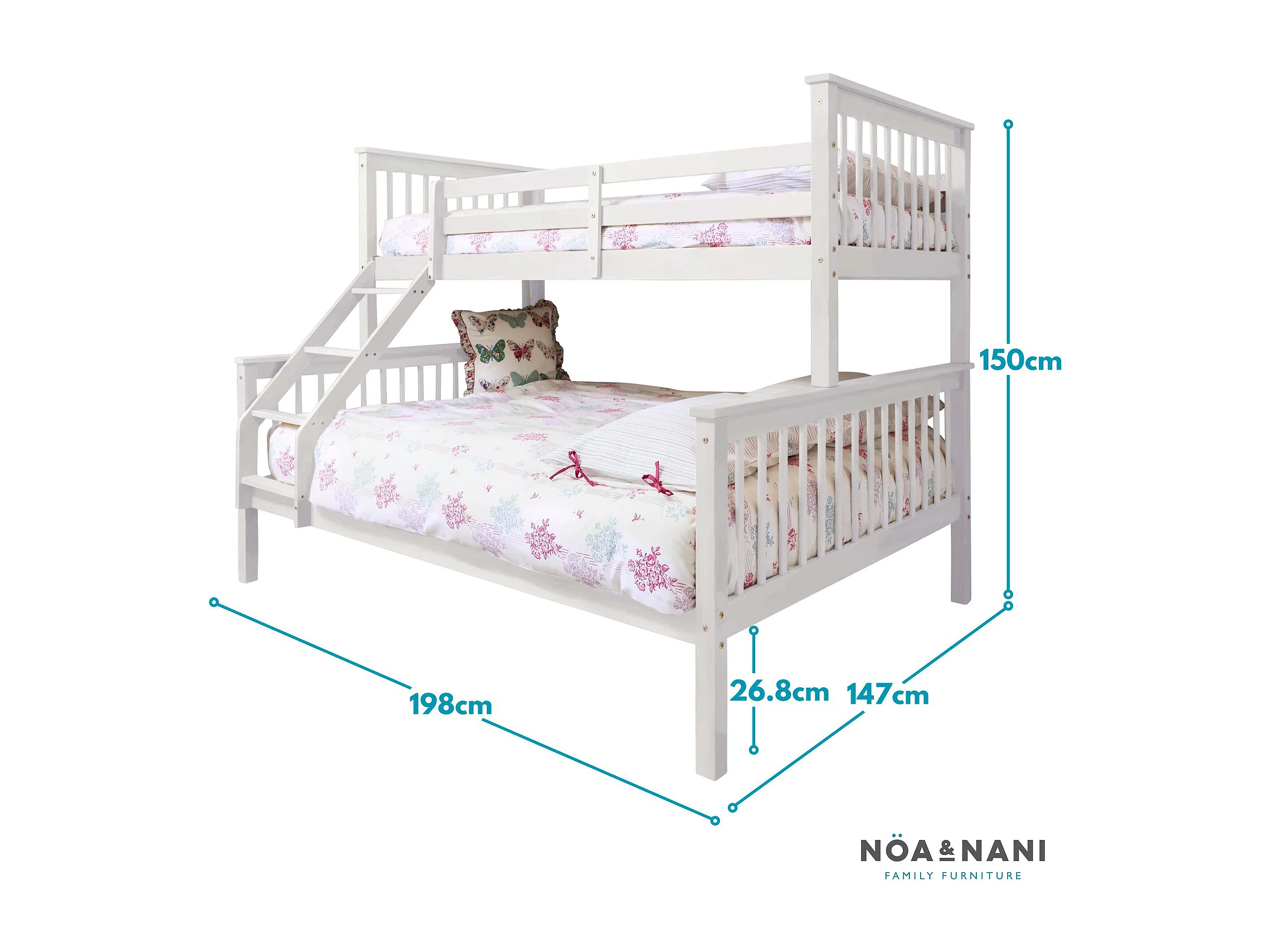 Noa & Nani Hanna Triple Bunk Bed with Single and Double Bed in White