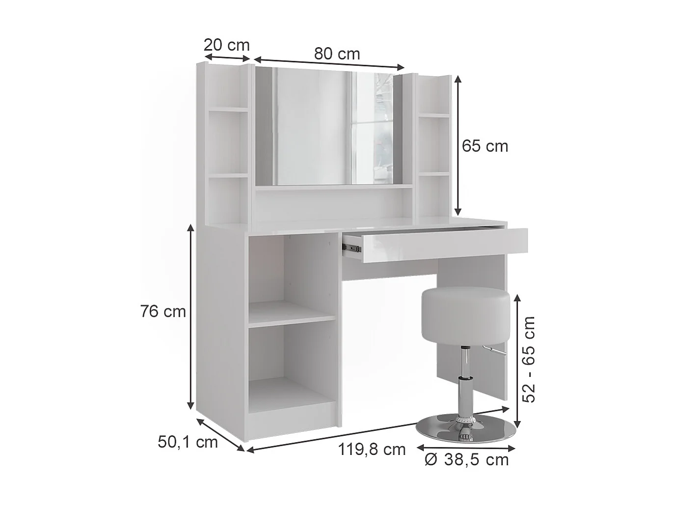 Vanity table white/white high gloss 119.8x50.1x76 sherry